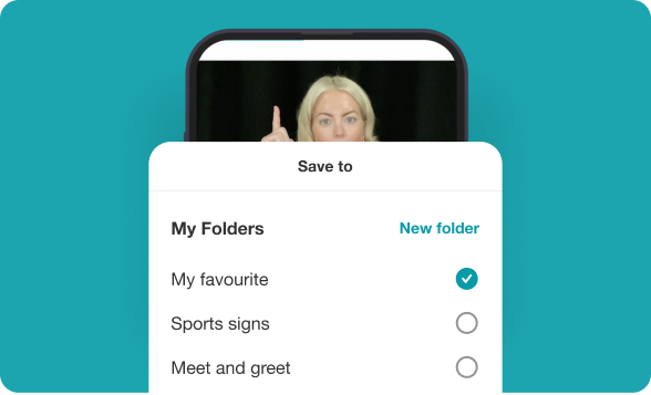 Organise your recorded signs by uploading them into your private library. You can create folders, add words, categories and choose multiple sign languages. Perfect to use when practising and improving your signing skills!